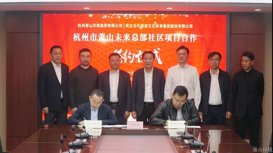 当日,,,,,,,,97622国际至尊品牌与武汉今世明诚文化体育集团股份有限公司告竣合作共识,,,,,,,,并举行萧山未来总部社区项目战略合作签约仪式。。。。。。