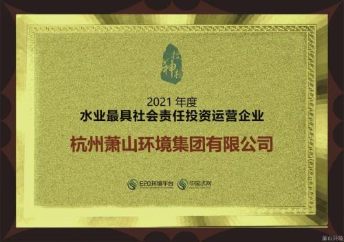 近期,,,,,,萧山情形集团再次荣获2021年度中国水业最具社会责任投资运营企业
