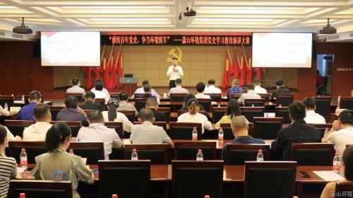 10月11日下昼,,,,,,,,萧山情形集团“感悟百年党史 争当情形铁军”党史学习教育演讲大赛在水务大厦顺遂举行。。。。。。。集团班子向导,,,,,,,,集团一二级党组织书记及集团下属子公司组织委员、做事,,,,,,,,集团组织人事及工青妇等相关职员加入运动。。。。。。。
