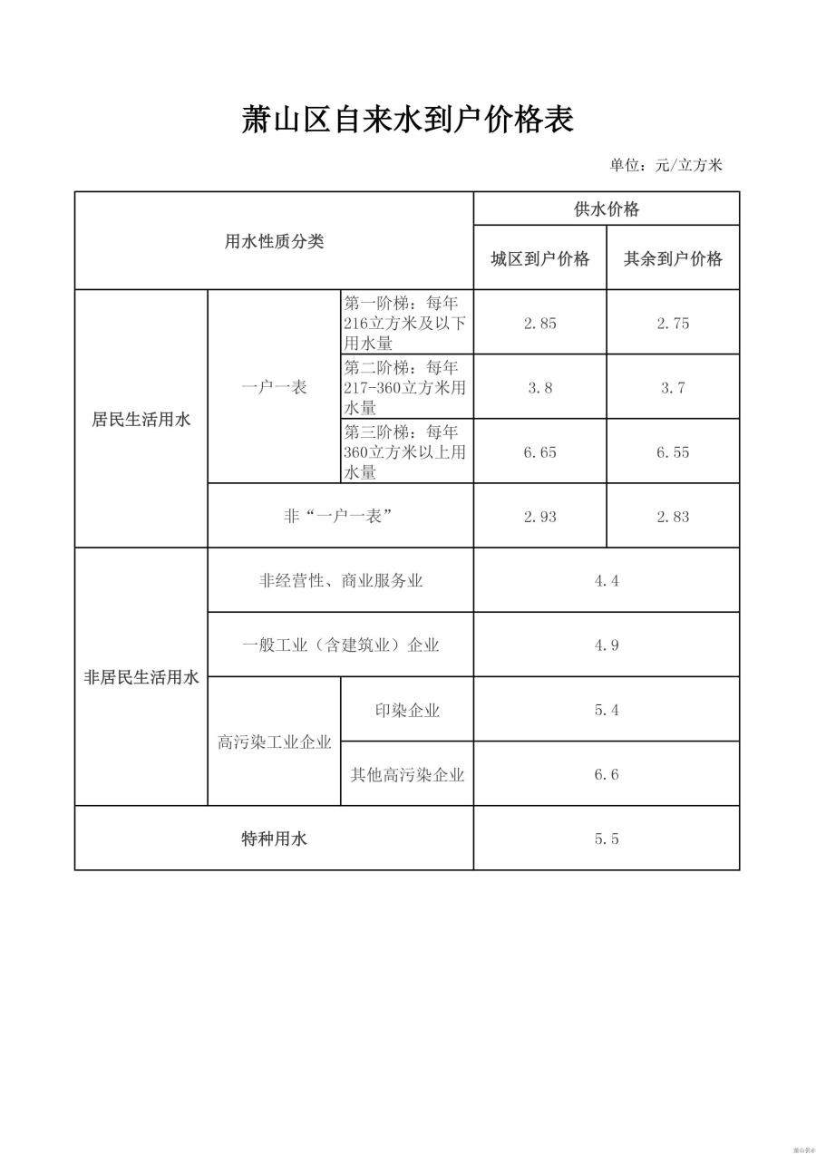非住民生涯用水:供水价钱凭证萧价【2016】46号文件自2017年1月1日用水时间起执行; ;;;;;;;污水处置惩罚价凭证萧价【2014】46号文件自2014年8月1日排水时间起执行。。。。。。。。