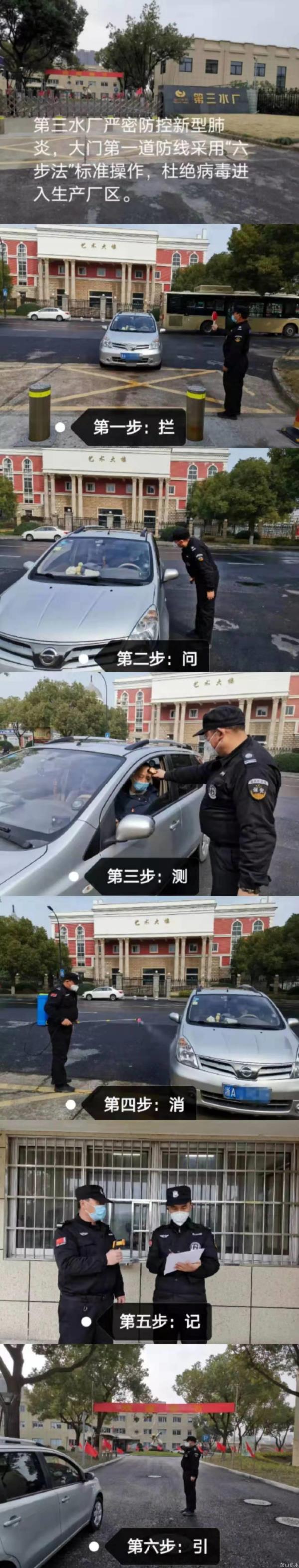 公司下属各水厂对收支职员、车辆举行严酷管控,,,,,,接纳拦、问、测、消、记、引的“六步法”标准操作,,,,,,杜绝任何可疑职员进入厂区。。。。。。。