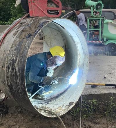 而绵延的雨水和基坑积水情形,,,,,,,也给割接历程中的电焊事情增添了操作难度。。。。。为了清静高效完成电焊使命,,,,,,,现场管理职员实时协调,,,,,,,只管在雨势较小时举行电焊操作,,,,,,,同时安排专人撑伞遮雨;;;;;基坑使用水泵一连性抽水,,,,,,,阻遏水电的接触,,,,,,,包管割接事情清静平稳地推进。。。。。