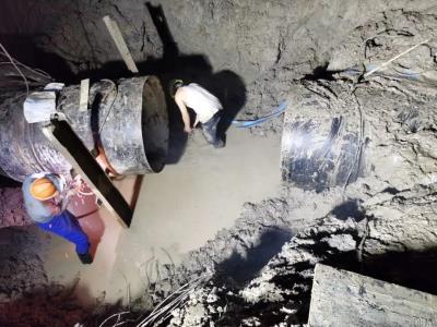 施工现场同心作业,,,,,,,割接事情提速推进。。。。。风里雨里,他们的身影奋战在一线,,,,,,,只为尽早恢复黎民的正常用水,,,,,,,这就是“乘风破浪”的供水人!