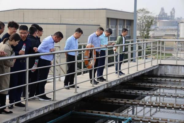 旅行的第一站,,,,,,全体职员来到了临江水处置惩罚厂一期后处置惩罚厂区,,,,,,在解说员的向导下,,,,,,依次旅行了药剂储罐区—调理池—三相催化氧化罐区—稳固池—高效沉淀池,,,,,,辖档退解了从污水进厂抵达标排放的一系列历程。。。。。。。。