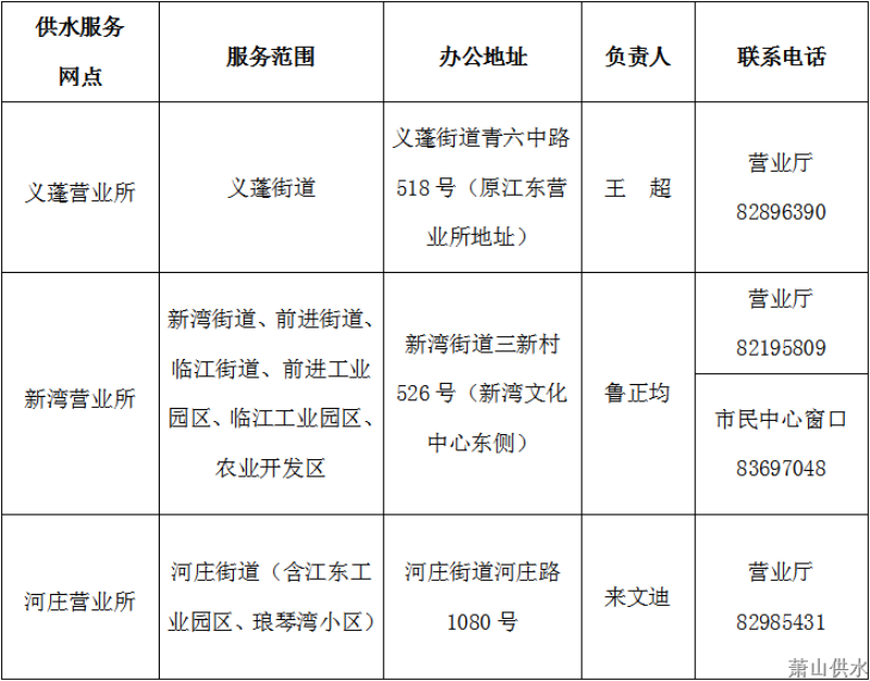 我公司因营业生长需要,,,,,决议自2020年8月24日起对钱塘新区供水服务网点作如下调解: