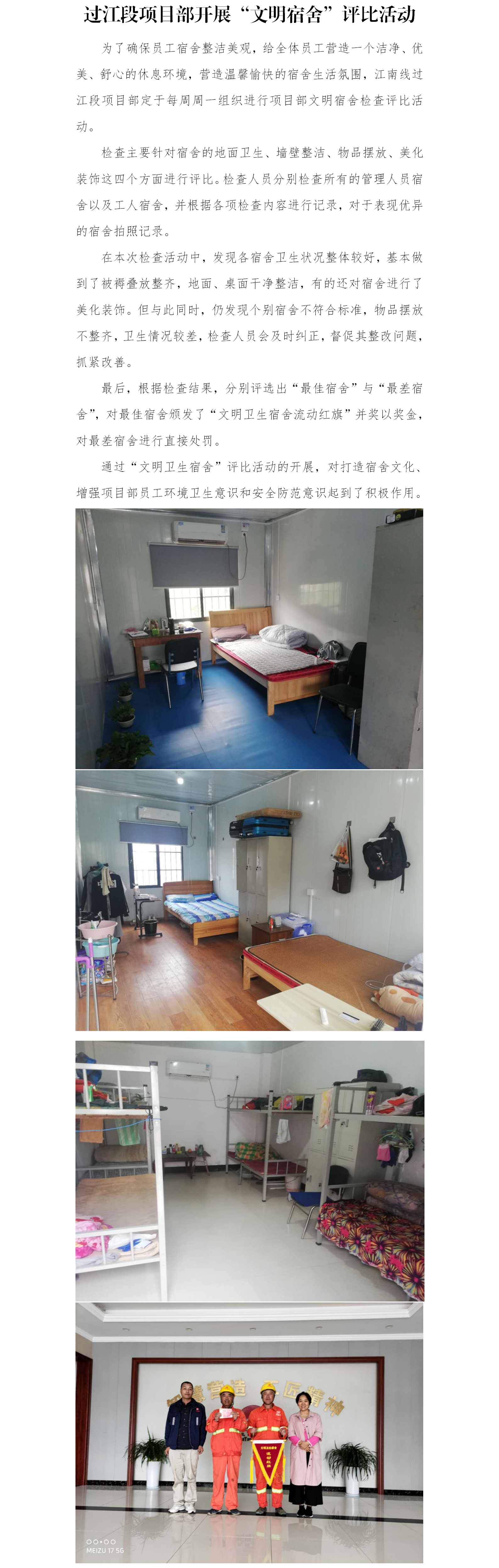 过江段开展文明宿舍评选运动