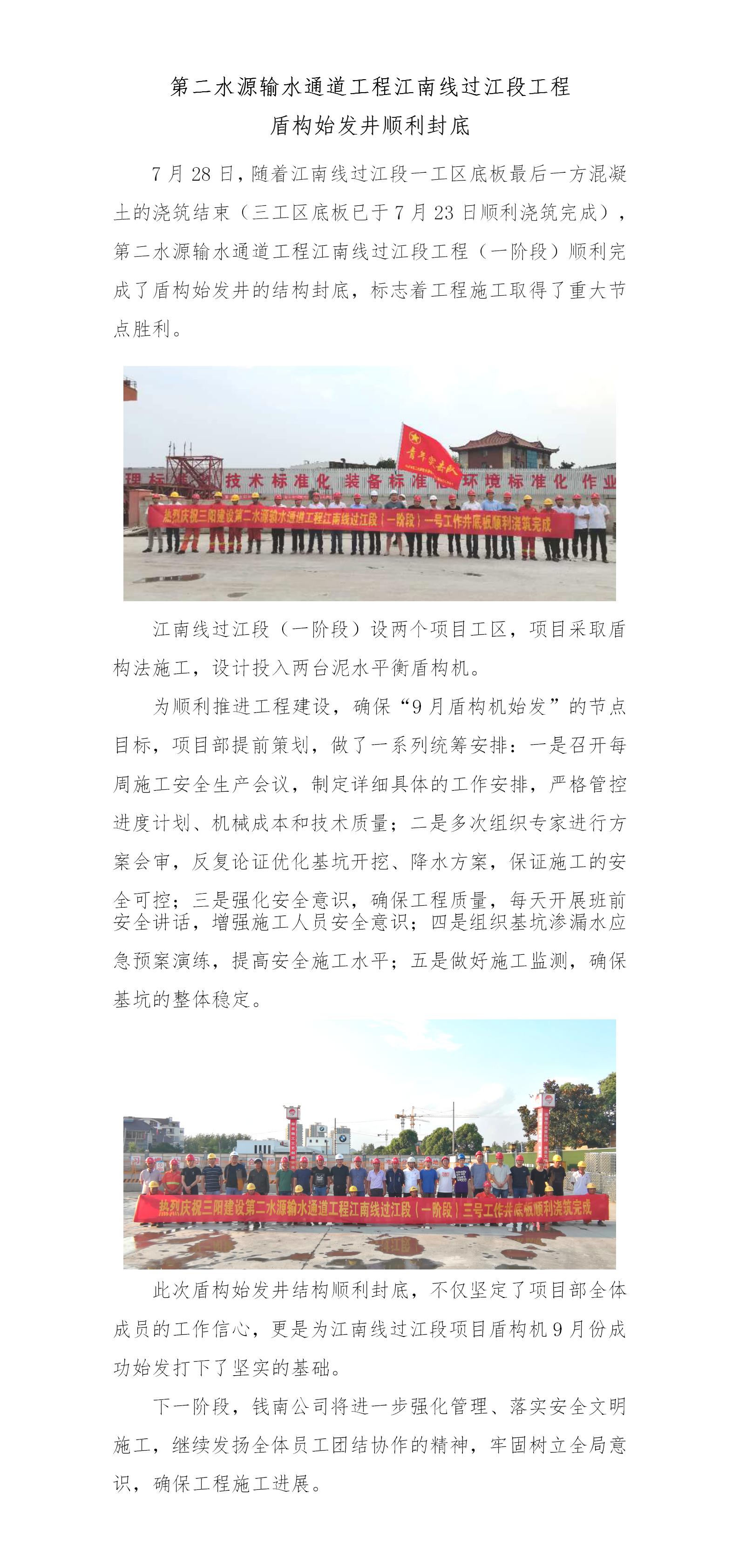 第二水源输水通道江南线过江段工程盾构始发井顺遂封底