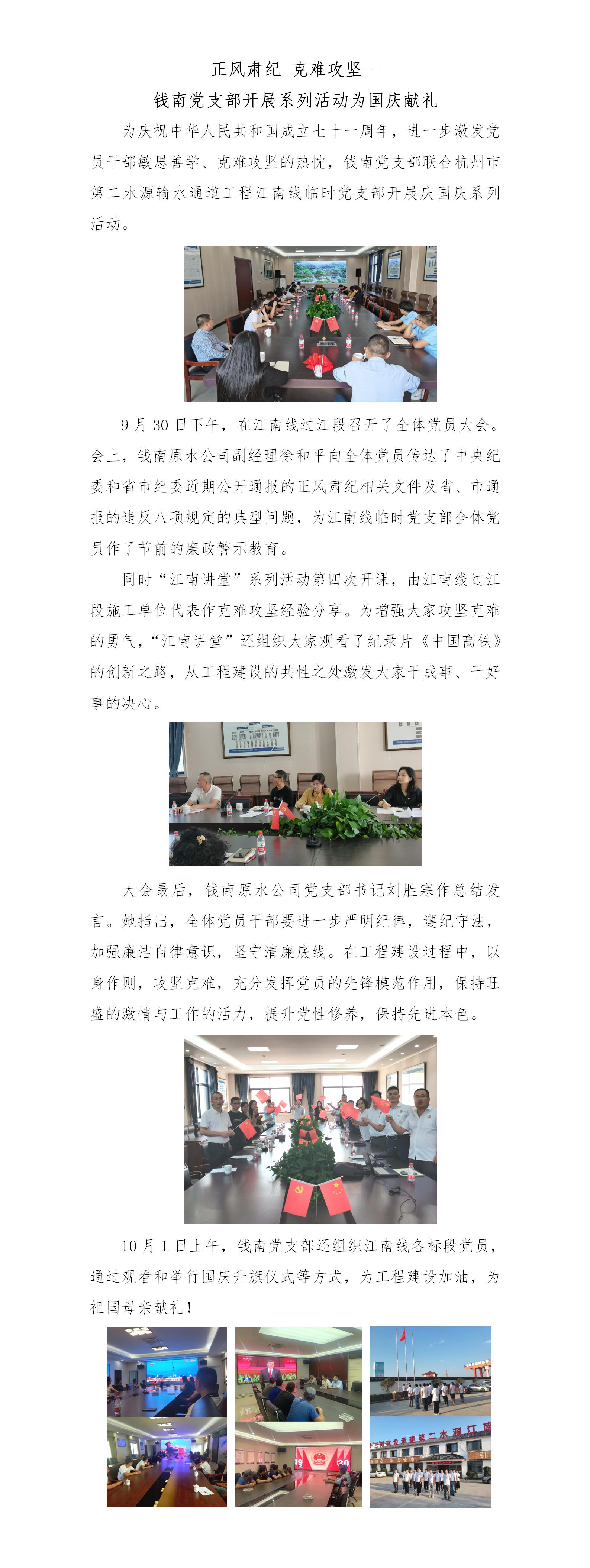 正风肃纪、克难攻坚——钱南党支部开展系列运动为国庆献礼