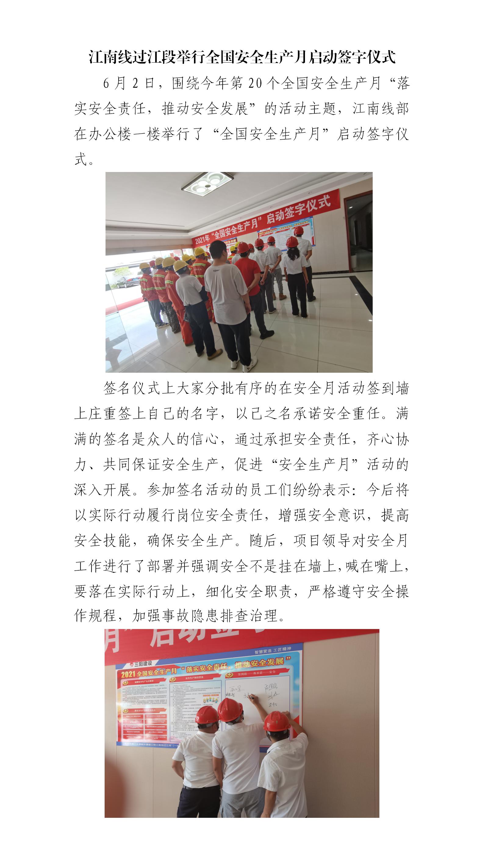 江南线过江段举行天下清静生产月启动签字仪式