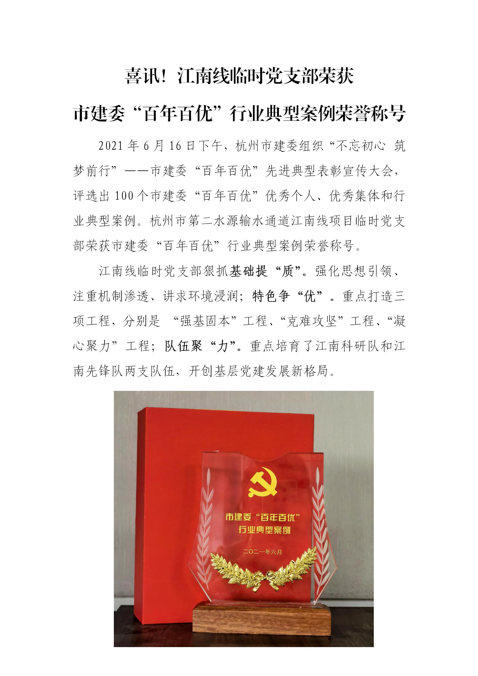 喜讯!江南线项目暂时党支部荣获市建委“百年百优”行业典范案例声誉称呼