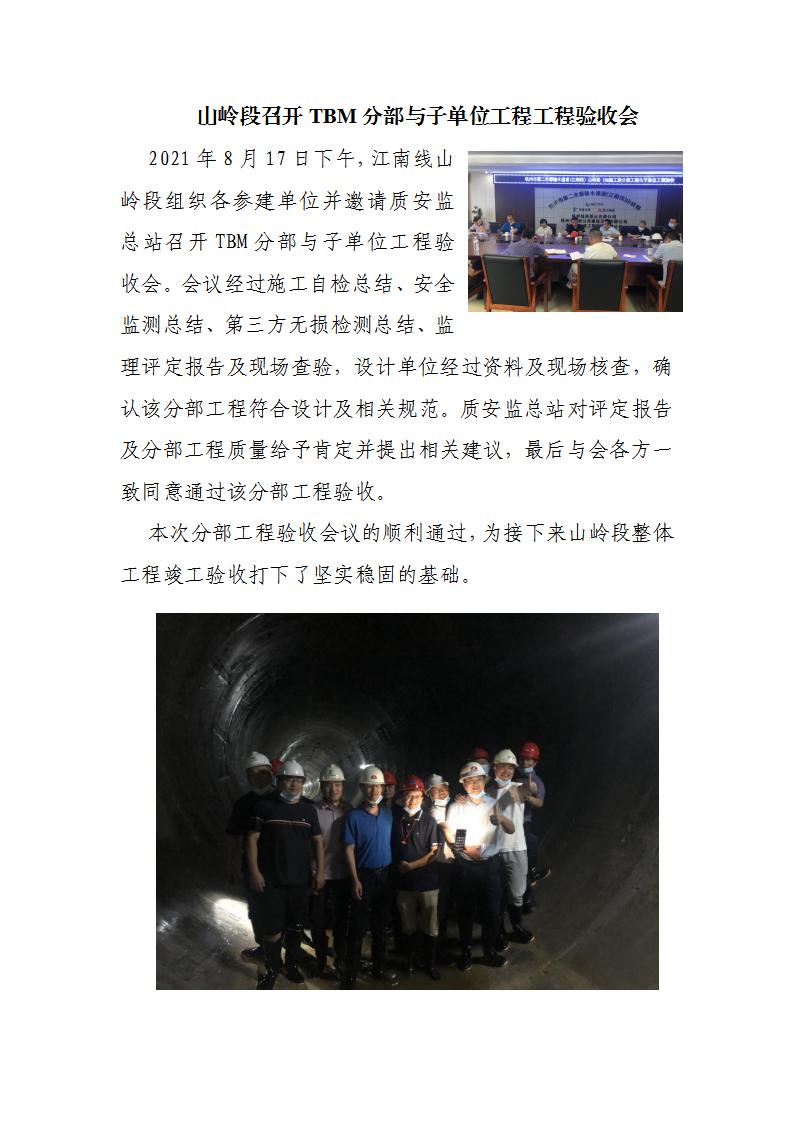 山岭段召开TBM分部与子单位工程工程验收会