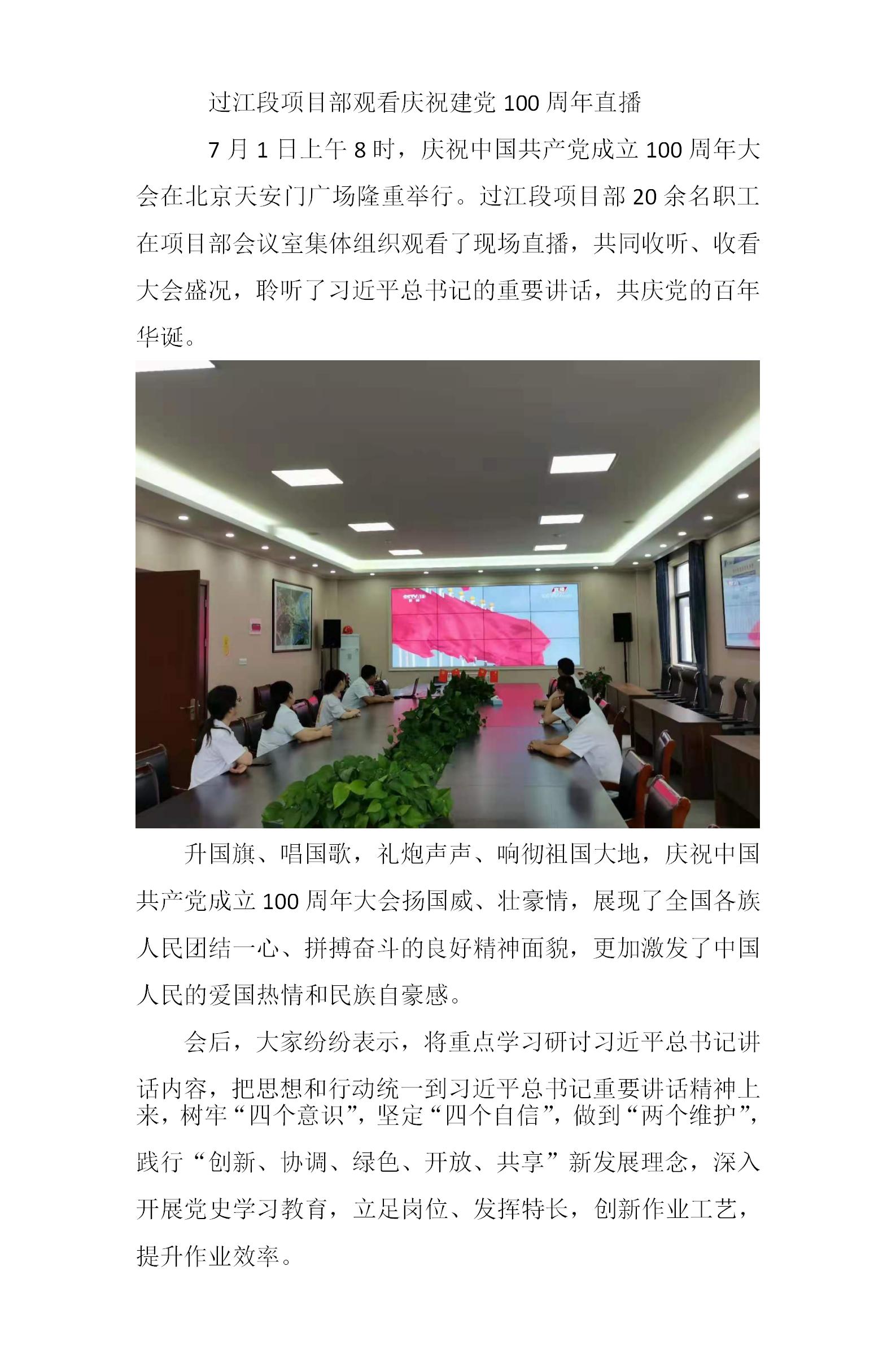过江段项目部寓目庆祝建党100周年直播