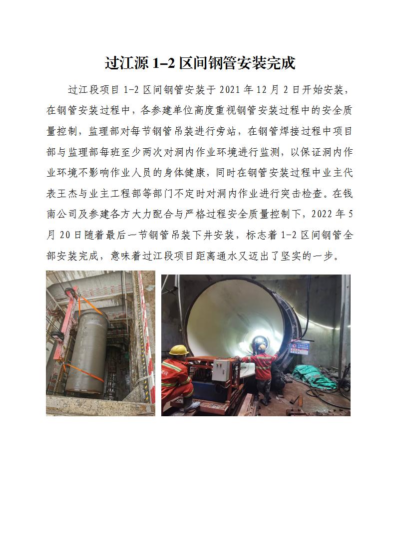 过江源1-2区间钢管装置完成