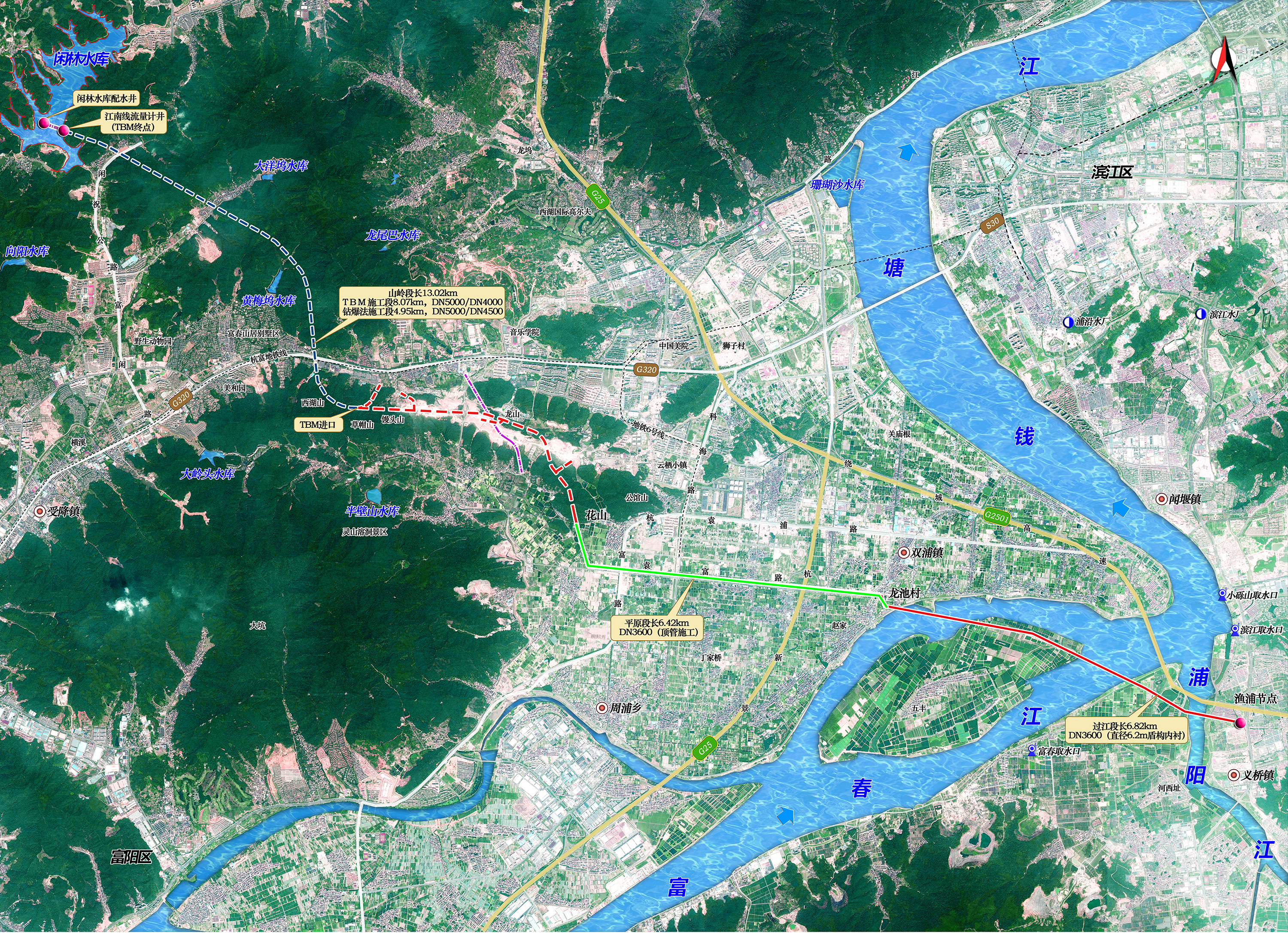 工程自余杭闲林水库配水井最先,,,,,,,,新建输水隧洞和管道,,,,,,,,途经余杭、西湖、富阳、萧山四个行政区,,,,,,,,最后至萧山渔浦节点,,,,,,,,总长约26公里,,,,,,,,总投资约30亿元,,,,,,,,全线分3个标段分段开工建设,,,,,,,,划分为山岭段、平原段和过江段。。。。。。