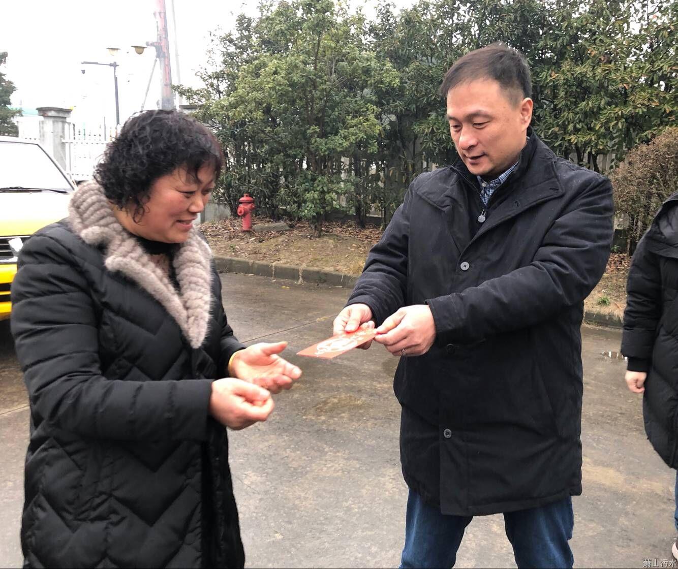在义桥泵站,,,,, ,陈海莹体贴询问泵站事情职员生产、生涯情形,,,,, ,谢谢他们为确保春节排水稳固有序支付的起劲,,,,, ,鼓舞了员工士气,,,,, ,振奋了员工精神,,,,, ,坚定了员工信心。。。。 。。。。同时,,,,, ,向值守职员致以新春问候,,,,, ,并亲手送上新年红包,,,,, ,希望各人新的一年,,,,, ,新的作为,,,,, ,恪尽职守,,,,, ,更上一层楼。。。。 。。。。