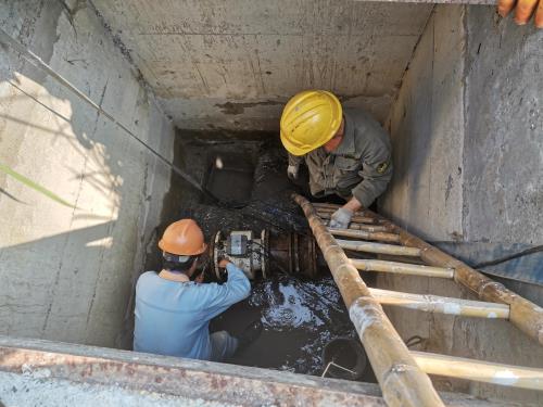 此前 ,, ,,,,进化机电园区泵站原出水流量计因传感器进水损坏 ,, ,,,,计量爆发误差 ,, ,,,,替换刻禁止缓。 。。。。。。由于闭水阀门靠近进化镇级泵站处 ,, ,,,,与进化机电园区泵站距离较远 ,, ,,,,在替换装置施工历程中需用排污泵排空污水管内一直回流的污水 ,, ,,,,增添了施工难度。 。。。。。。