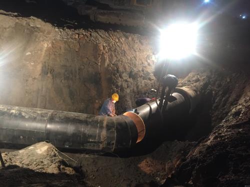 为配合钱塘新区东沙湖二期(8号线影响规模段)建设需要,,,,,,,污水公司奋战20余小时,,,,,,,于4月16日下昼5时顺遂完成DN1000污水管迁改工程,,,,,,,比预计时间提前了6小时。。。。。