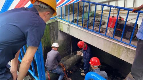 7月25日23时55分,,,,,,,中片运管中心事情职员迎风冒雨,,,,,,,紧绷清静施工这根弦,,,,,,,在狭窄的集水池整整奋战17个小时,,,,,,,顺遂完成泰和泵站水泵刷新。。。。。。