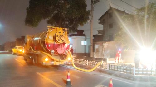 当天下昼3时,,,, ,东片运管中心接讯,,,, ,瓜沥泵站DN1400管排气阀井故障。。。。。。东片运管中心连忙启动应急预案,,,, ,前往现场踏勘,,,, ,制订抢修计划,,,, ,使用槽罐车污水运至瓜沥泵站。。。。。。故障抢修时代,,,, ,瓜沥、衙前、红垦农场、萧山机场等区域相关涉水企业阻止污水运送。。。。。。经由7小时一连施工,,,, ,排气阀井抢修顺遂完成并恢复通水。。。。。。