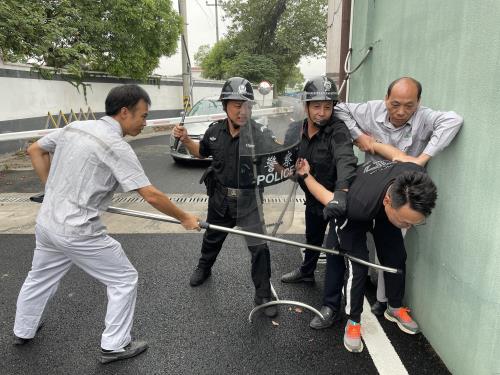演练最先前,,,,,,东片运管中心清静员举行反恐防暴知识培训,,,,,,演示解说反恐防暴器械的使用要领和技巧。。。。。。。演练则模拟一名“入侵者”持刀携带危害物品胁迫保安预强行突入中心泵站,,,,,,试图破损排污装备,,,,,,威胁辖区内污水运送清静,,,,,,造成一名防疫职工受伤。。。。。。。