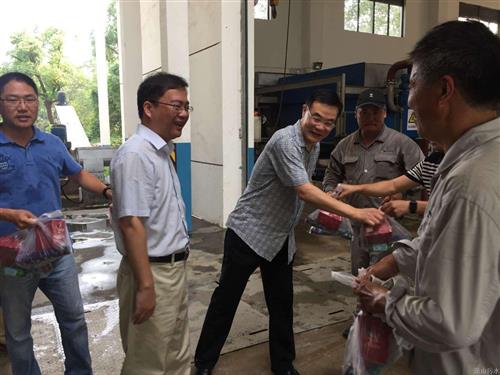 连日高温炙烤杭城,,,,,,红色高温预警连连拉响,,,,,,住民生涯用水量大幅上升,,,,,,污水实时有用处置惩罚显得尤为主要。。。。。。。7月26日上午,,,,,,集团班子向导兵分三路,,,,,,划分前往钱江、临江水处置惩罚厂和南片运管中心,,,,,,检查高温天气清静生产事情,,,,,,并送上种种防暑用品,,,,,,慰问高温下坚守在一线的事情职员。。。。。。。