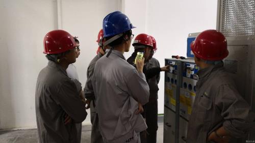培训现场,,,,,,部分成员认真聆听各注重要点,,,,,,尤其是停电时,,,,,,高、低配电房各开关的应急处置惩罚方法,,,,,,并用手机拍录下现场教学视频,,,,,,回去逐步回首整理。。。。。。随后演练模拟大江东工业集聚区突降暴雨状态,,,,,,临江厂提标段遭遇雷击、装备停运,,,,,,开展现场演练。。。。。。